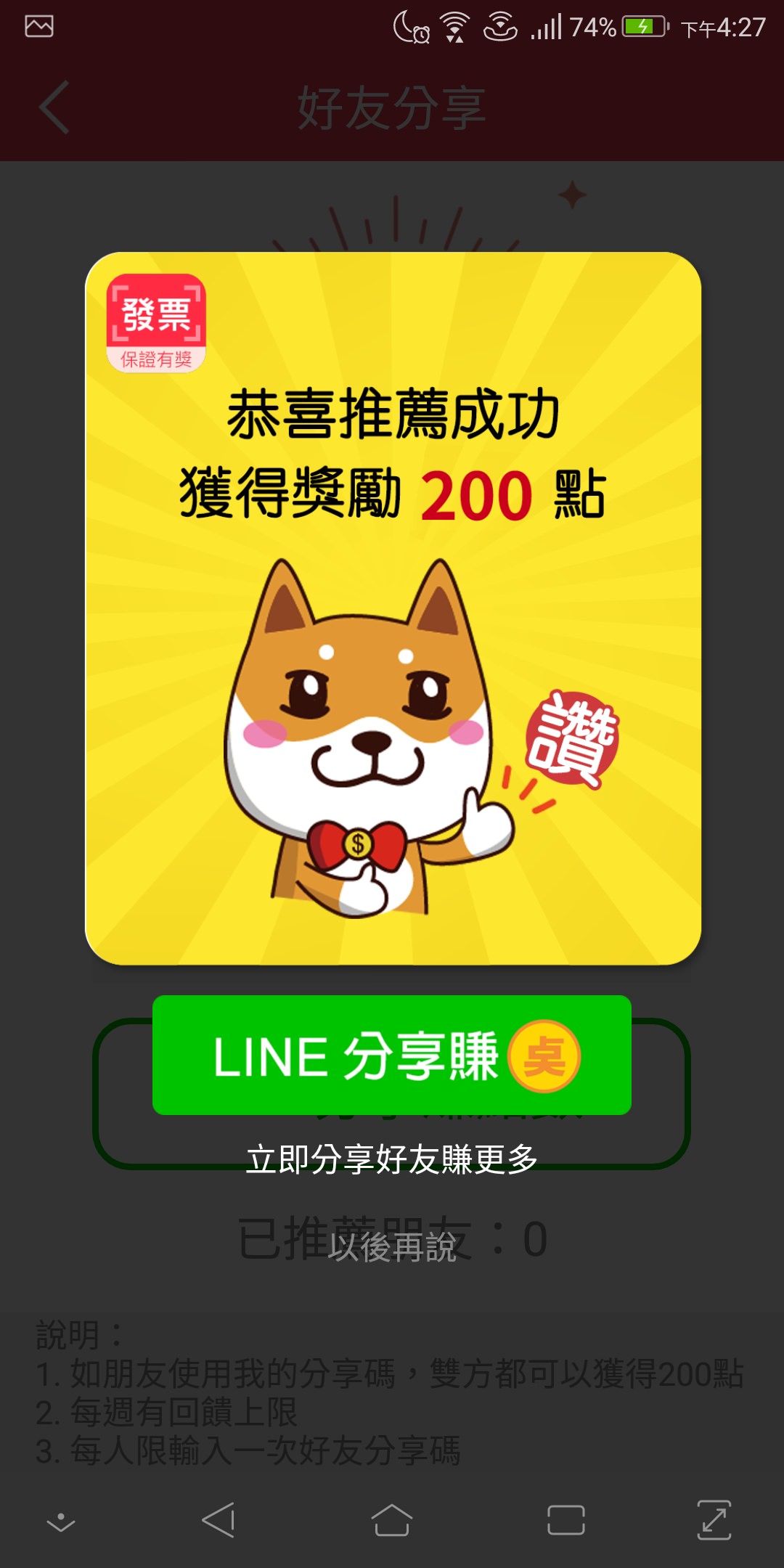 咱們雙方都能獲得200點(可以多換兩張抽獎券)