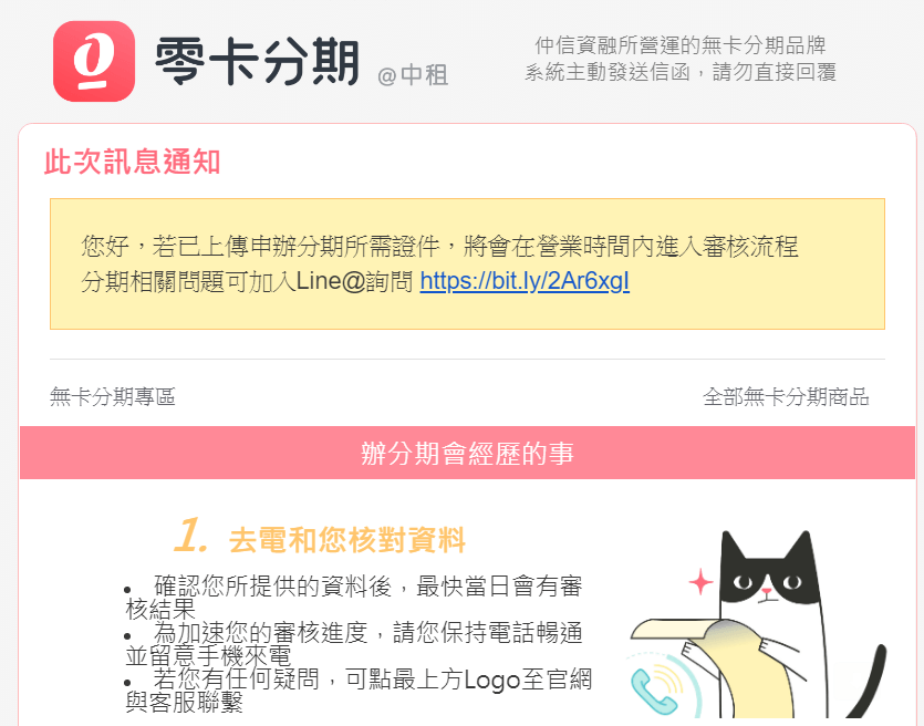 期間中租會有專員打電話來,詢問是否有申請這項服務(類似信用卡發卡前的照會)