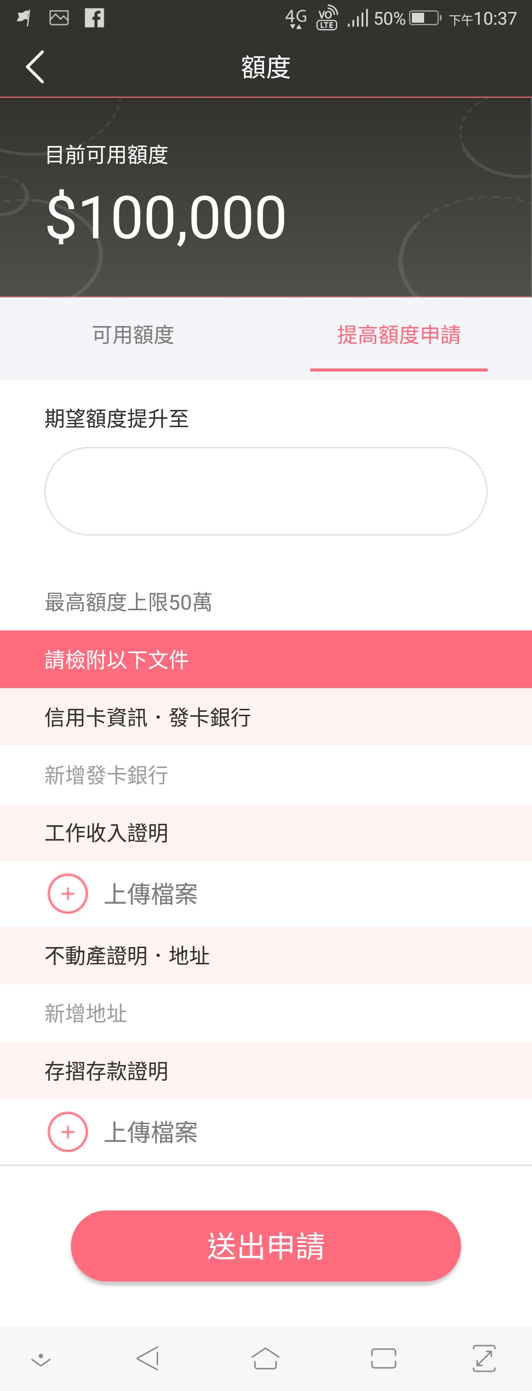 如果有要額外增加額度,則是需要檢附工作收入、存款證明等資料