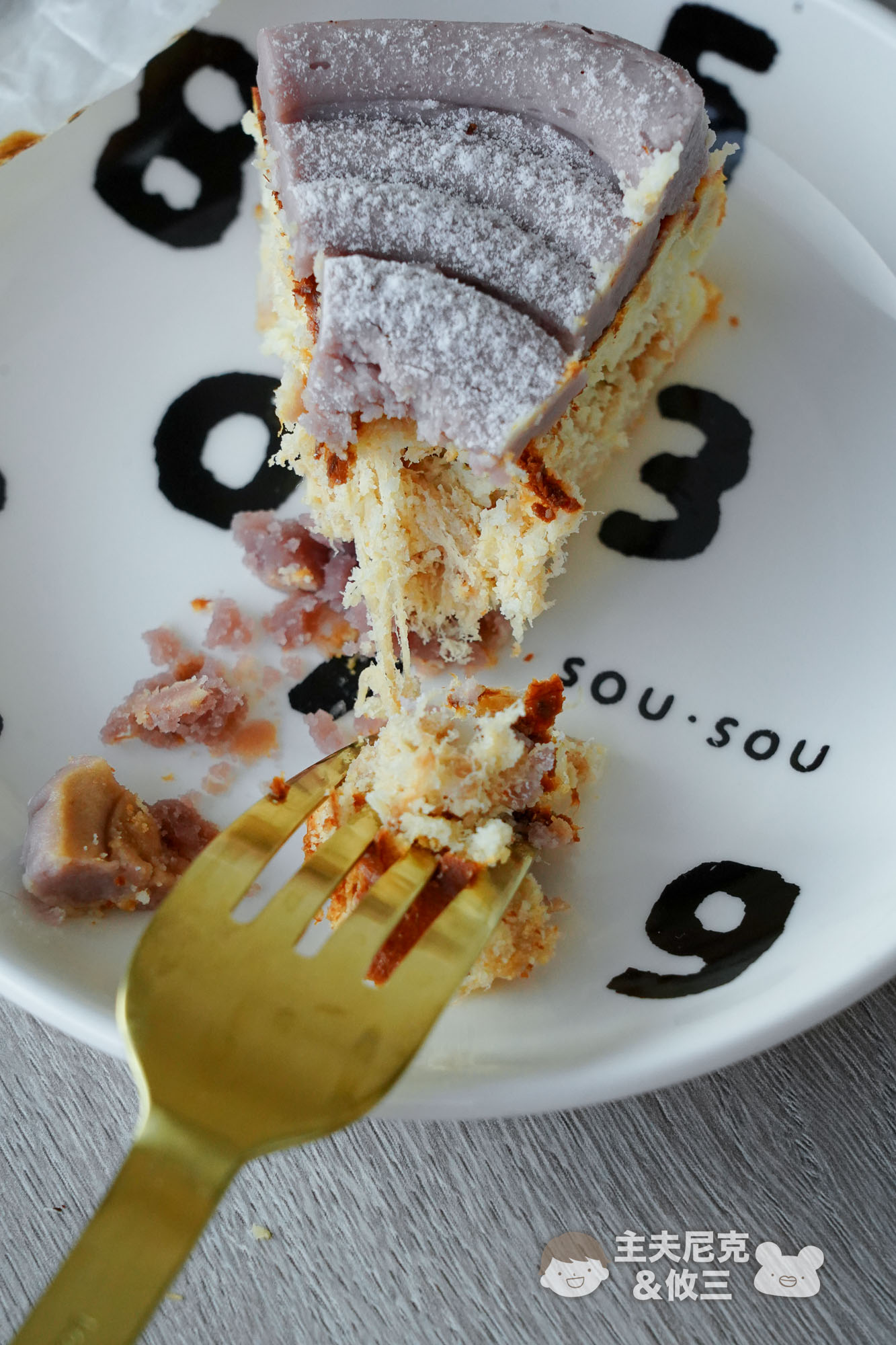 靠中心還有顆粒芋頭餡,整塊蛋糕口感都不一樣!