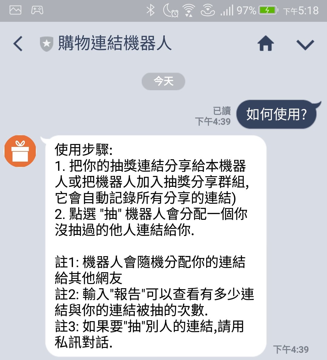 我的們分享連結,就會被機器人收入自系統中讓大家一鍵抽獎