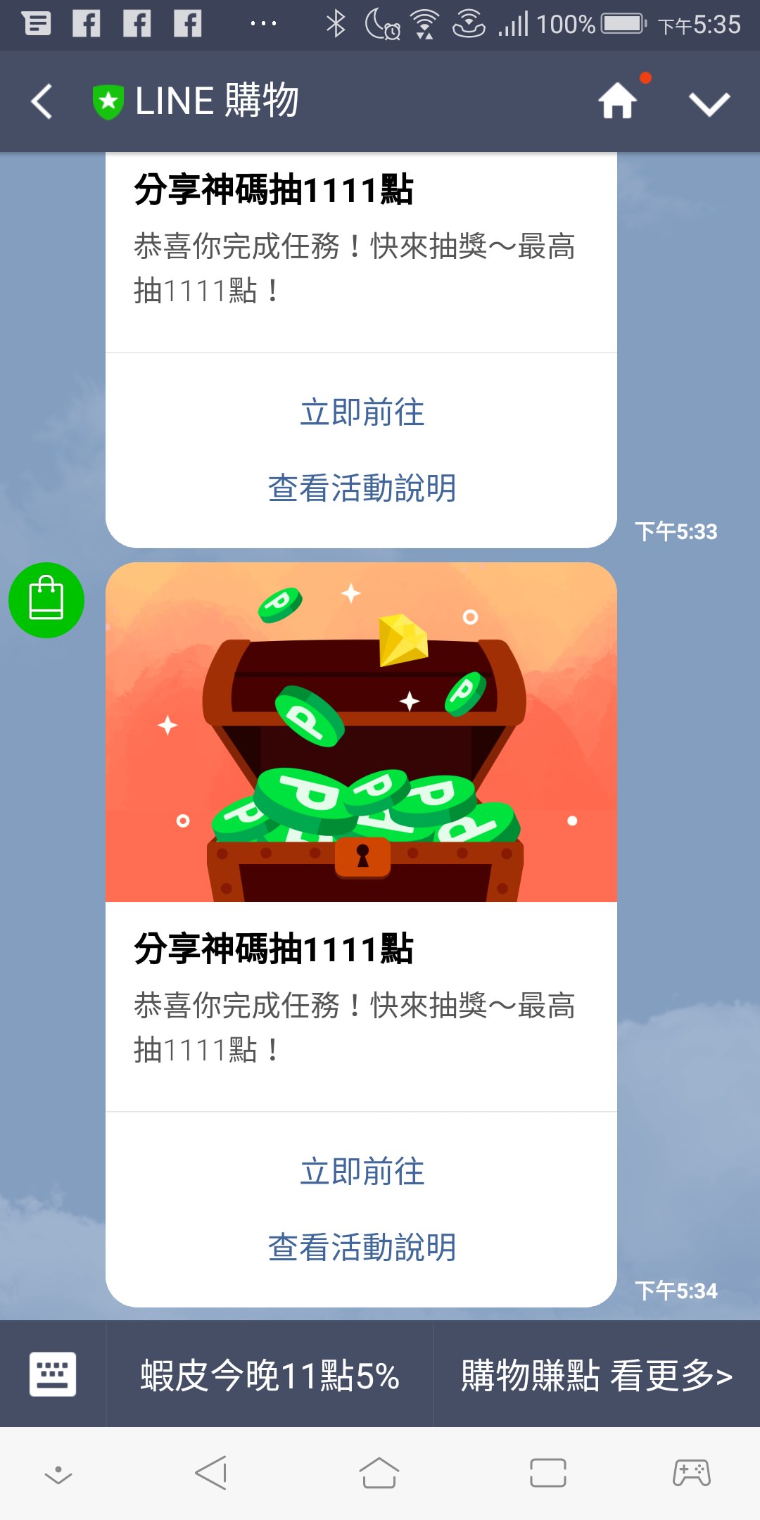 就可以爽按1,111次,領到1,111點的LINE POINT和殘廢手