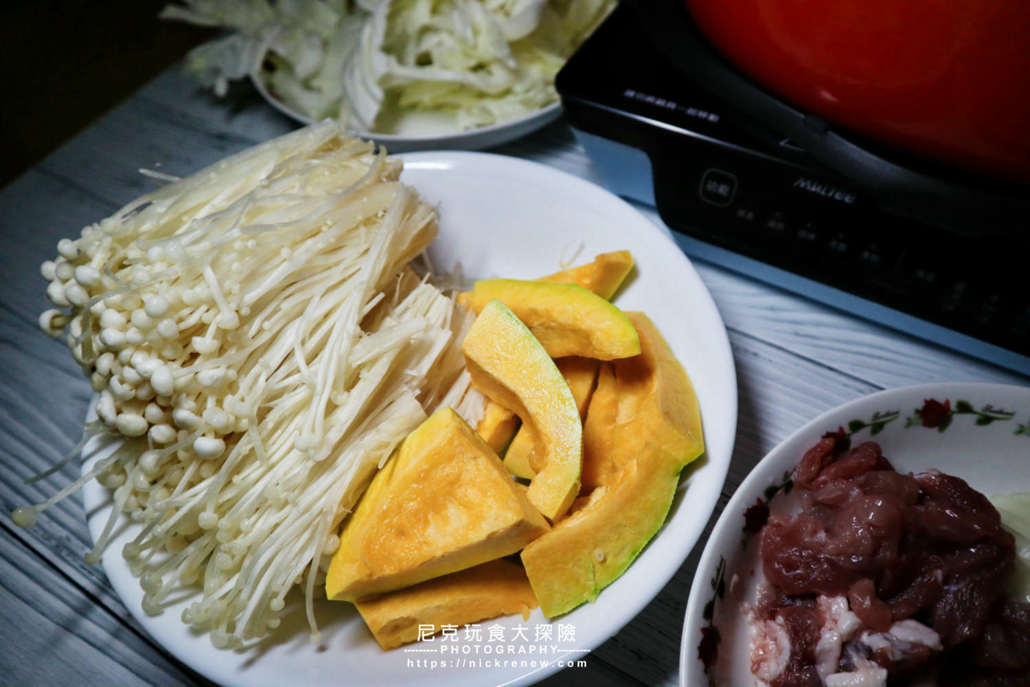 2)蔬菜:金針菇、高麗菜、南瓜、芋頭