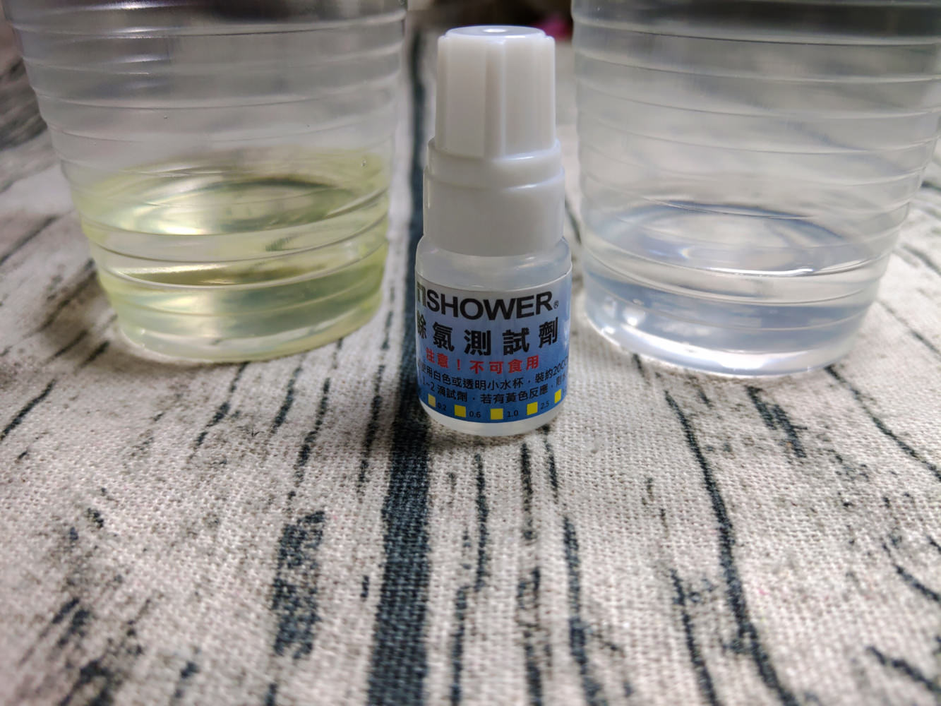 右邊的則是經過nSHOWER過濾蓮蓬頭過濾過的自來水