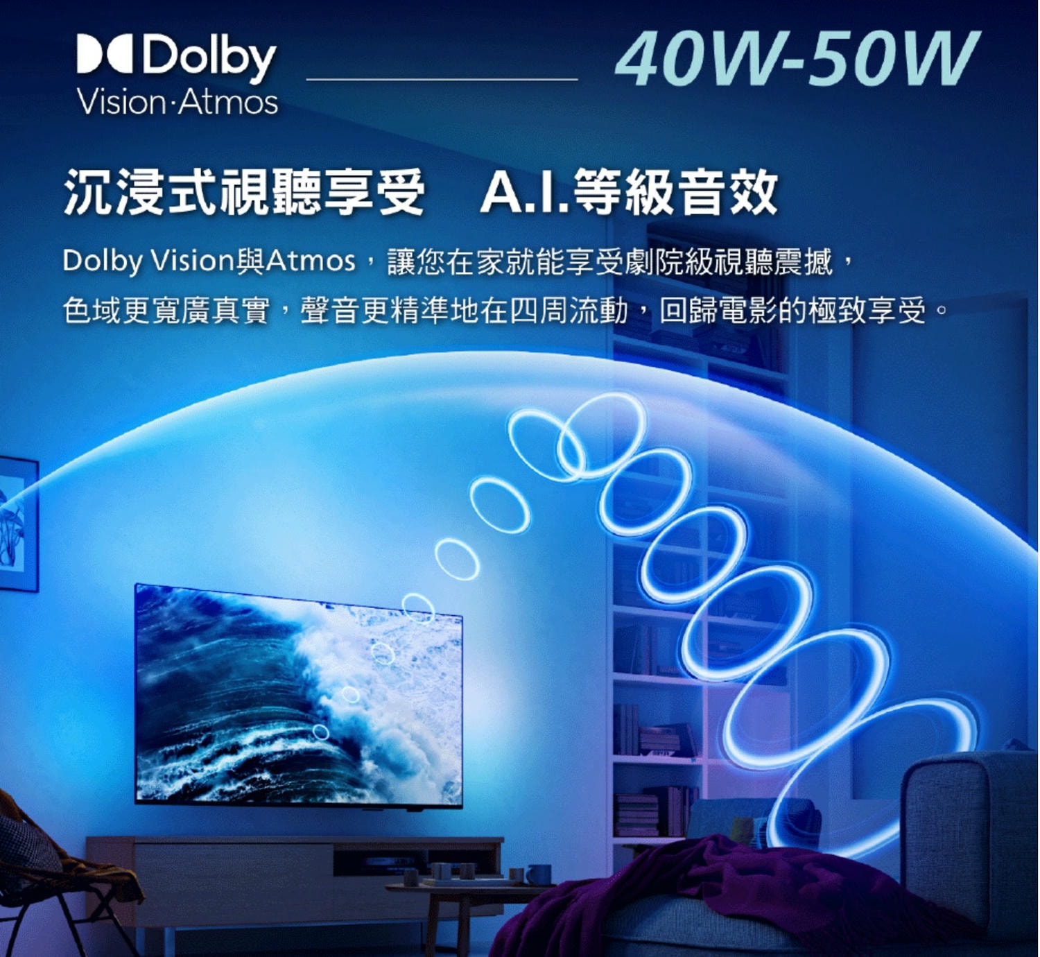 除了畫面好,還有支援Dolby Vision Atmos,除了追劇、平常聽音樂也超享受
