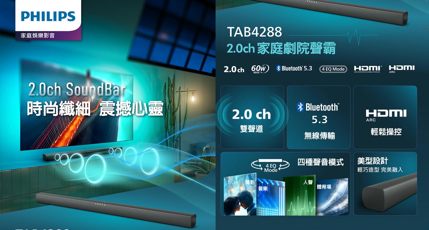 跟團尼克飛利浦電視 獨家贈送 Philips 飛利浦 2.0 聲道藍牙聲霸(TAB4288)