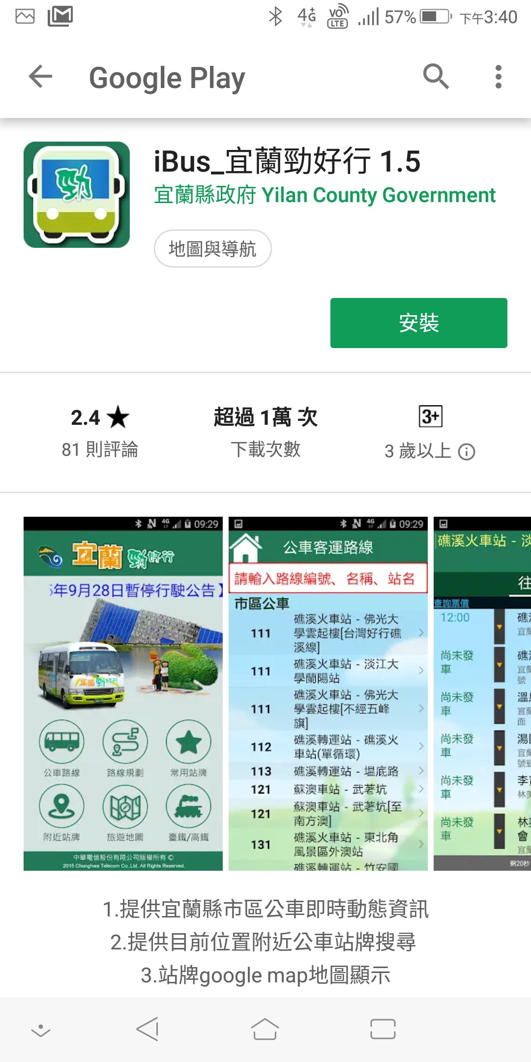 除此之外,也可以下載宜蘭當地的公車APP追蹤公車狀態