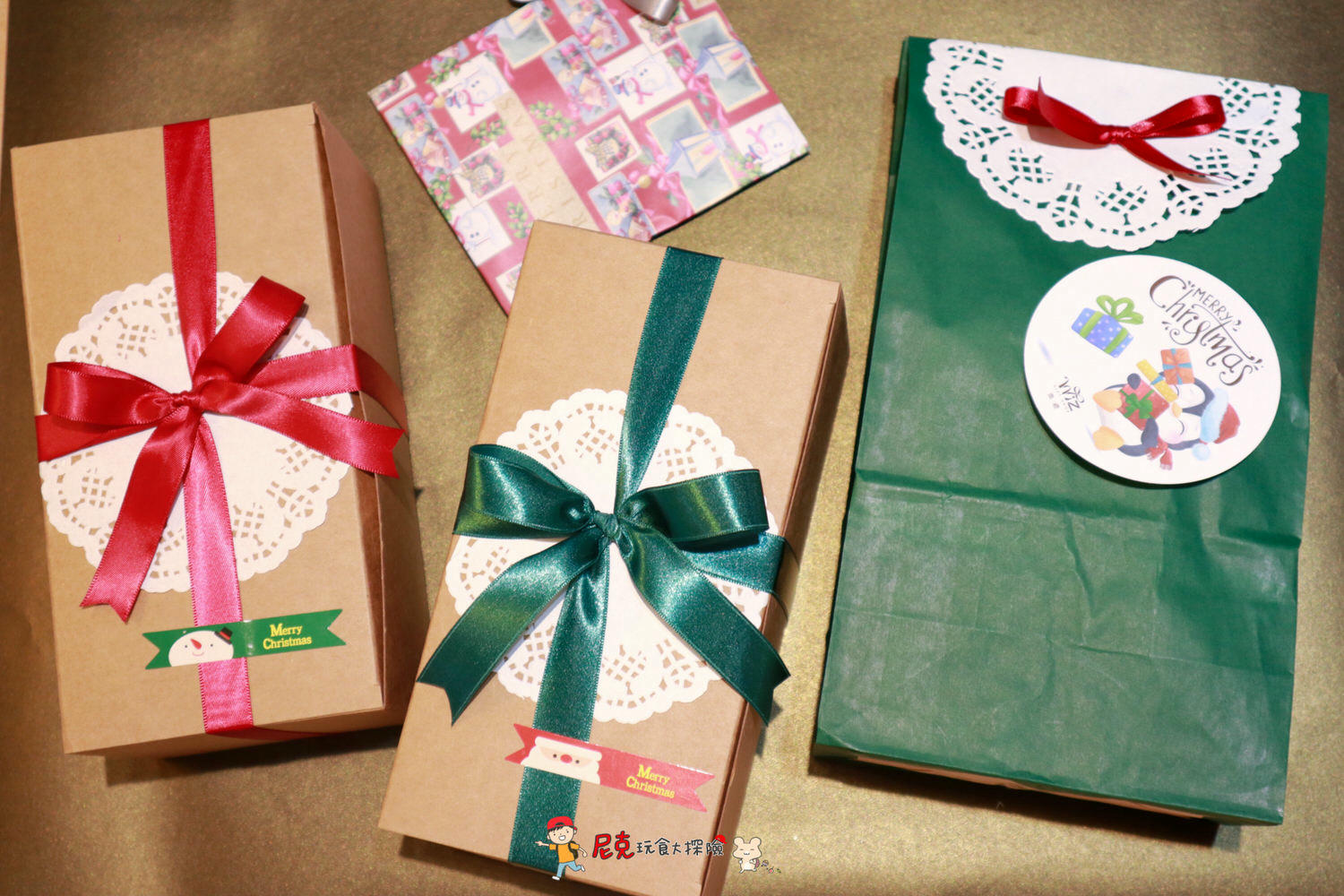 主要的包裝分為紅綠兩款,上方都會有可愛的緞帶及雪人、雪花小卡,對於不會包裝禮物的朋友真的是超強福音!!